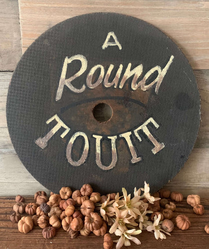 Hand painted "A Round Touit" Sign on Grinding Disc